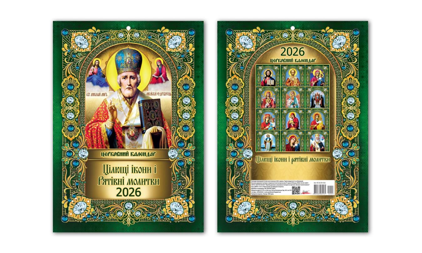 Артикул: 279813 Наименование: 2026 Календарь перекидной Николай А4 Описание: Формат А4, Новоюлианский стиль Еденицы измерения: шт. Остаток на складе: 40.000 Ширина: 21.000 см. Высота: 29.500 см. Цена: 30.00 грн.