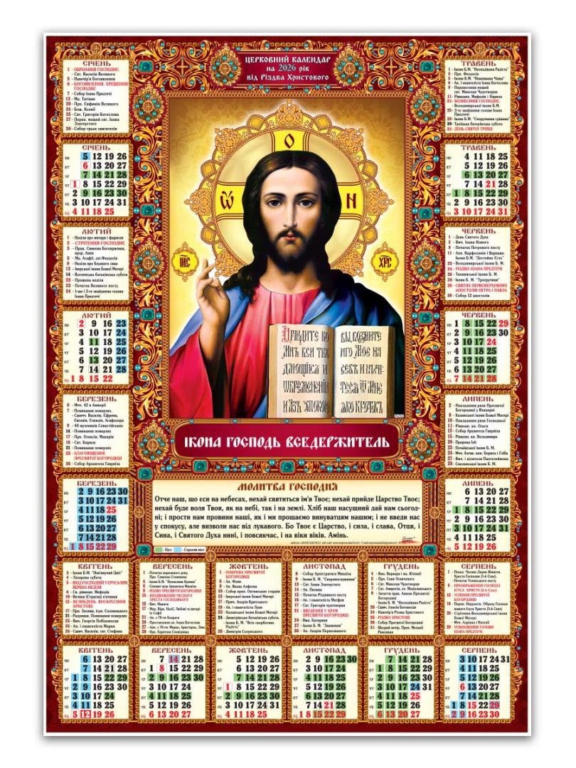 Артикул: 283487 Наименование: 2026 Календар Спаситель А2 Описание: За новоюліанським стилем Еденицы измерения: шт. Остаток на складе: 92.000 Ширина: 42.000 см. Высота: 63.000 см. Цена: 12.00 грн.
