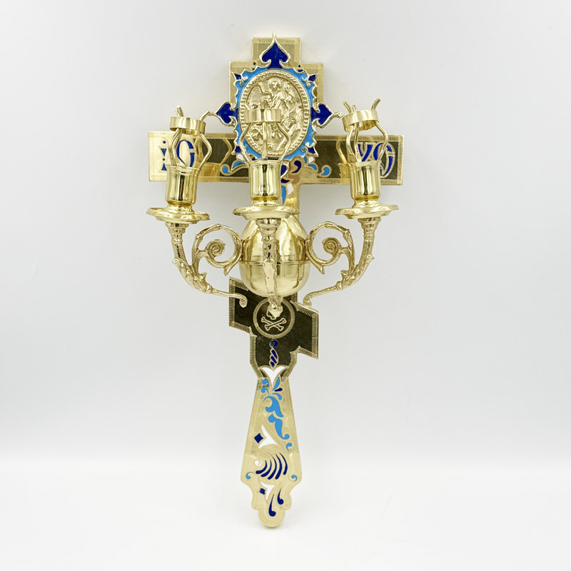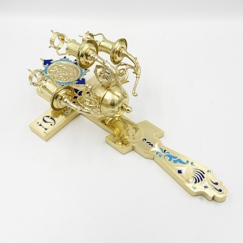 Пасхальний трисвічник з хрестом з латуні в руку священику, який символізує незриме світло Святої Трійці. Цей трикірій з хрестом використовується лише на Великдень і Світлу Седмицю