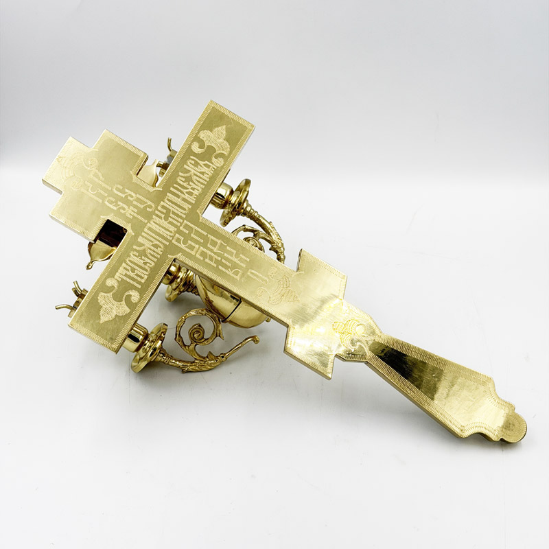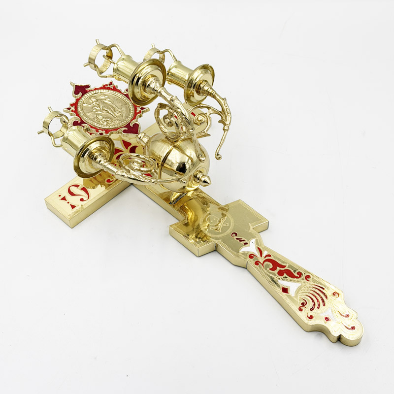 Великодній трисвічник з латуні в руку священику, який символізує незриме світло Святої Трійці. Цей трикірій з хрестом використовується лише на Великдень і Світлу Седмицю.