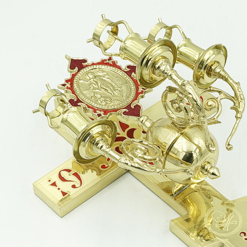 Артикул: 281179 Найменування: Трисвічник пасхальний з хрестом ОЛ-червона Опис: Латунь, емаль Одиниці виміру: шт. Залишок на складі: 0.000 Ширина: 17.500 м. Висота: 34.000 см. Ціна: 5400.00 грн.