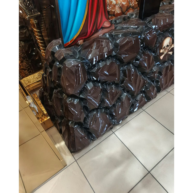 Опис: Тумба: мдф з різьбою під об'ємне каміння, фарба з лакуванням. Фігури: дерево/мдф з лакуванням, фігури писані