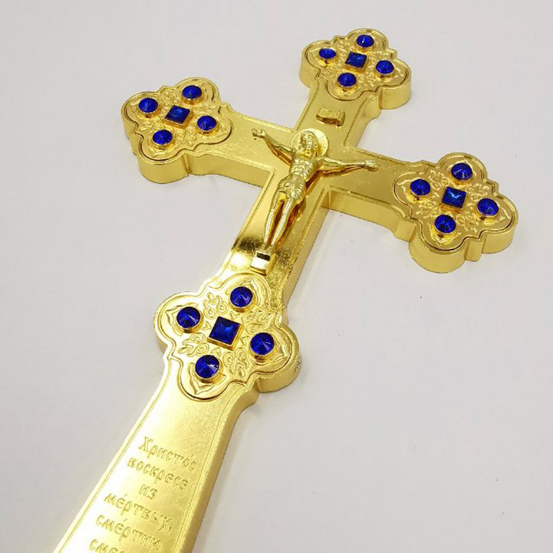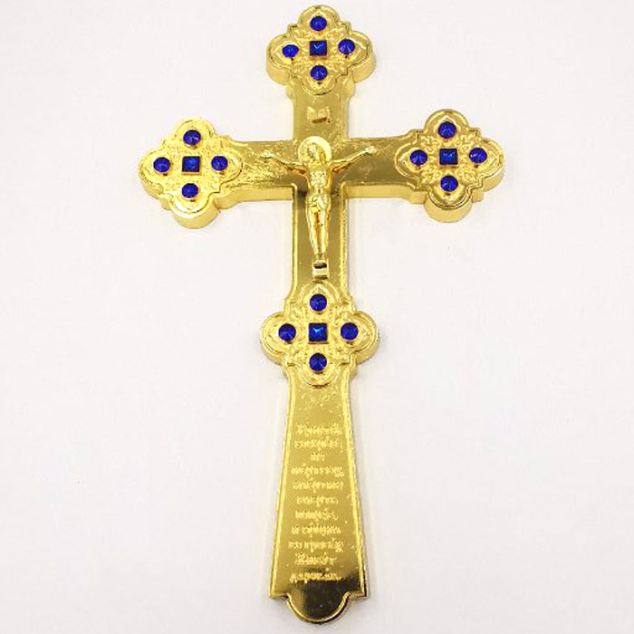 Найменування: Хрест напрестольний сині камінці ЧК-жовтий