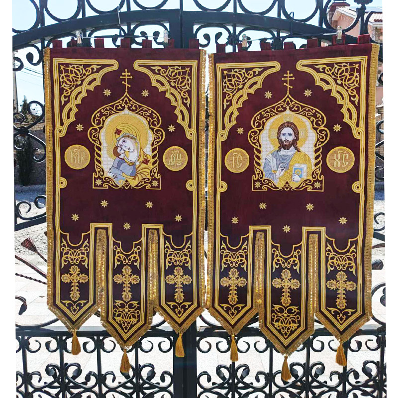 Хоругви, це ікони на матерії або металі, прикріплені до довгих держаків, у вигляді знамен. Їх носять під час хресних ходів, як церковні знамена.